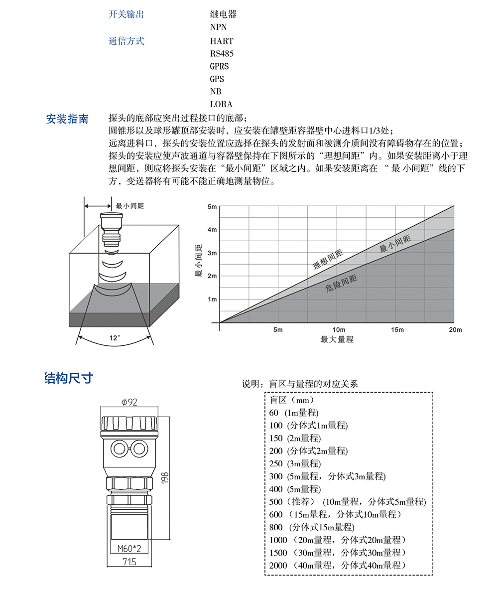 適用測量的介質 : 適用于大部分液體及粉狀顆粒狀固體,弱酸,弱堿,強堿,低于40%的強酸。若在強酸應用場合,請與我司聯系,應使用防腐探頭。