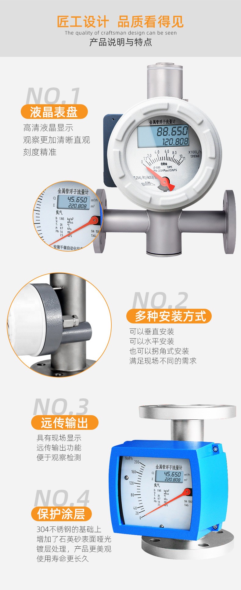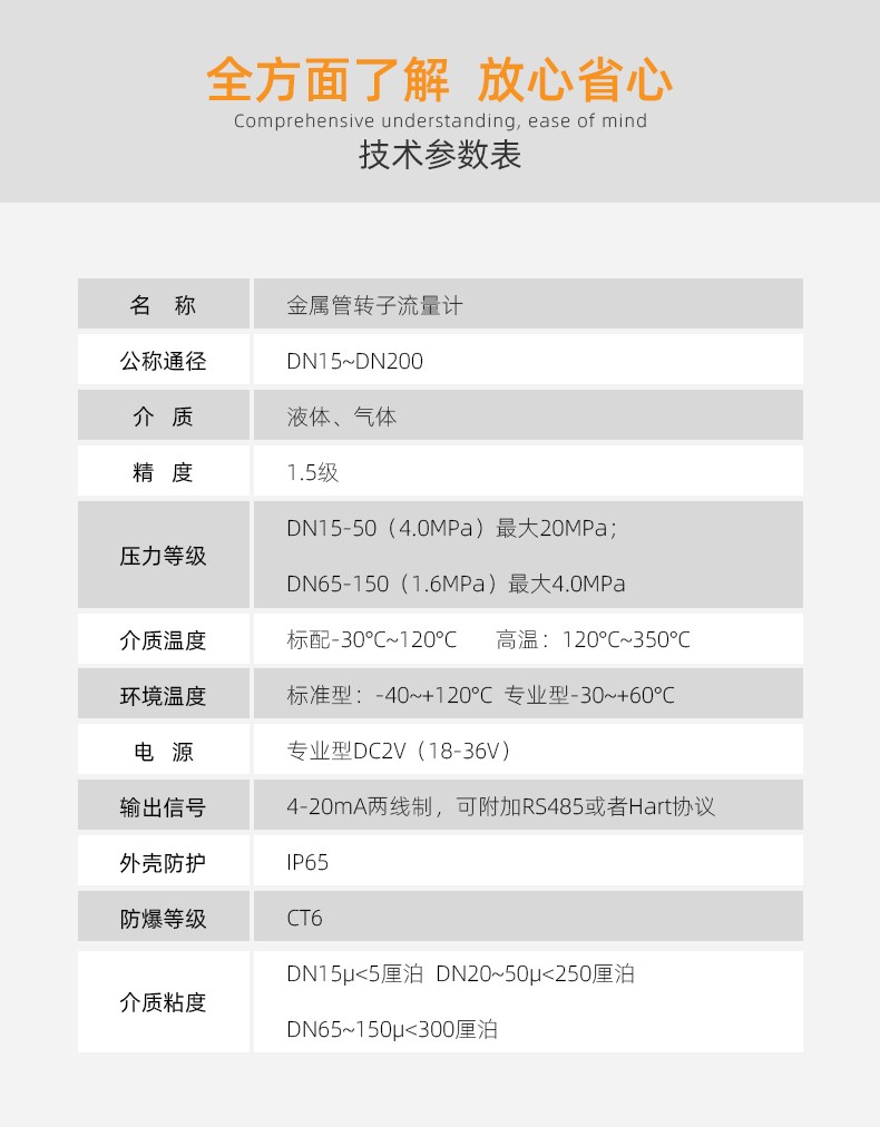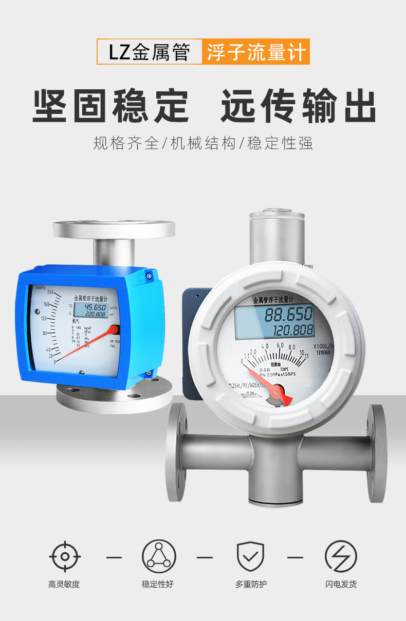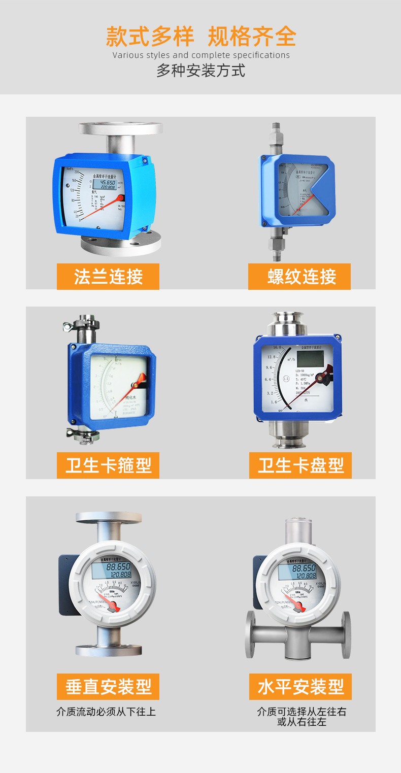 金屬管轉子流量計可用于復雜,惡劣環境及各種介質條件的流量測量與過程控制中,適用于測量液體、氣體。按指示、適用情況和信號輸出形式分類有:指針型、電遠傳型、耐腐型、高壓型、夾套型、防爆型。支持液晶顯示,現場顯示累積、瞬時流量,支持數字通訊,現場修改測量參數,